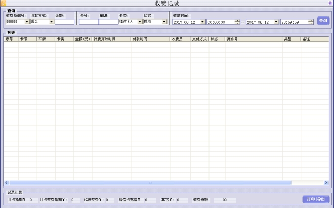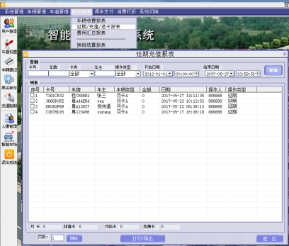 ◆ 报表查询包含1)授权报表2)车主报表3)充值报表4)金额报表5)收费报表6)出入报表7)出入详情报表8)车场状态