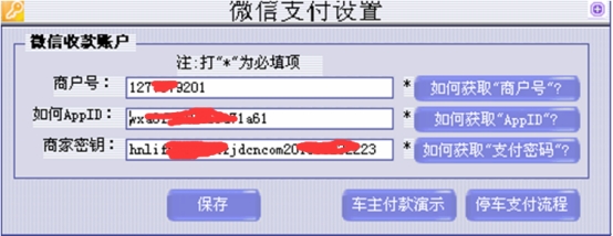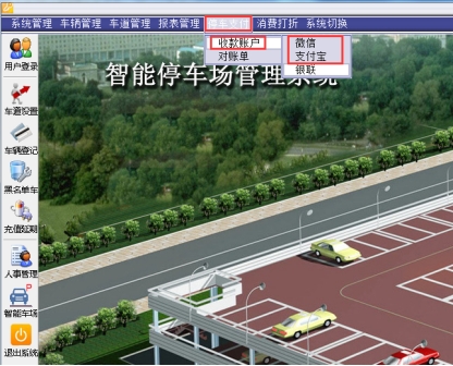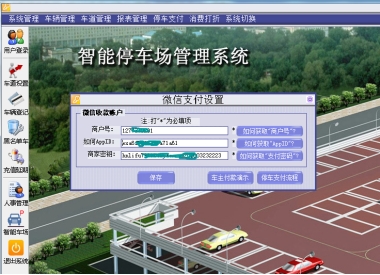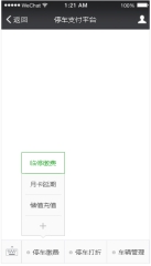 注:使用微信支付功能必须开通微信支付公众号;具体流程看在软件界面点击停车支付,选择微信支付,如图所示