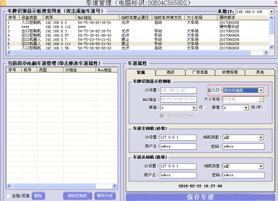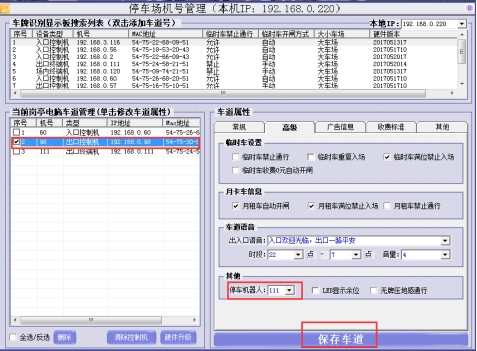 因为停车机器人用在出入口所以要和某个出入口控制机绑定同一个车道