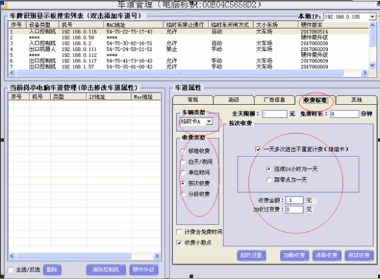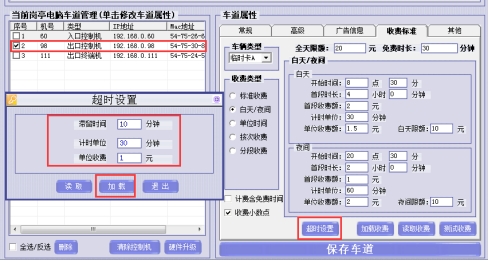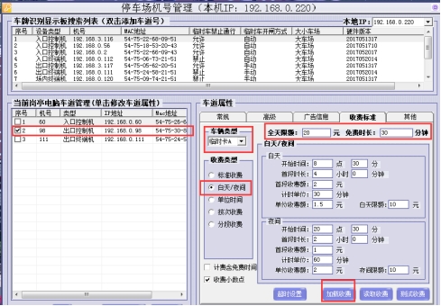 收费设置,一般停车场都在出口收费,所以一般我们只选中出口控制板加载收费标准。