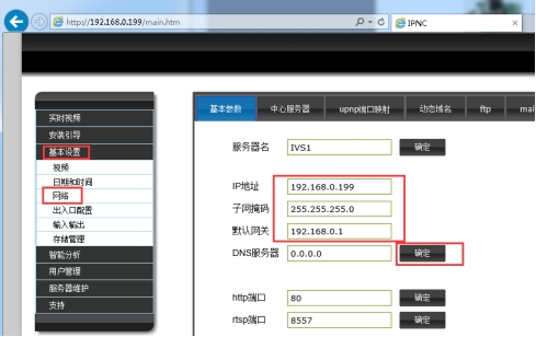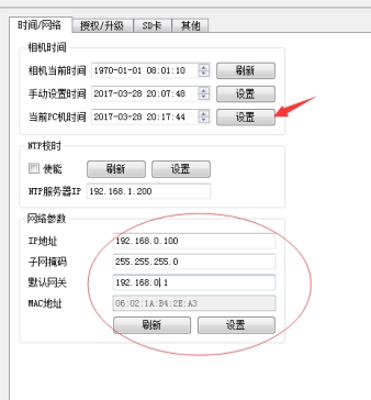 单台相机通电根据您购买相机的型号参考对应型号设置界面,将相机IP地址(192.168.0.100)改成您自己局域网分配的IP地址(注意:任何设备的IP地址都不能相同,以免冲突)