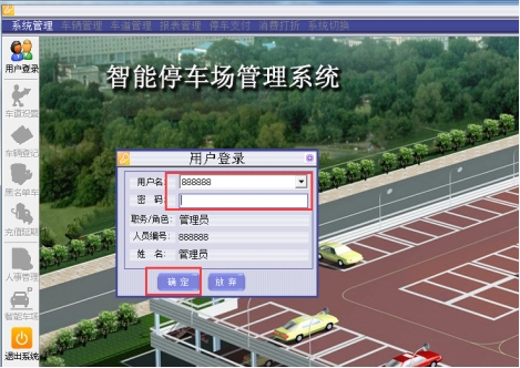 创建完数据库保存退出后再次打开停车场软件需输入密码方可以登录,默认密码为空,登录后您可以自行修改超级管理员密码.