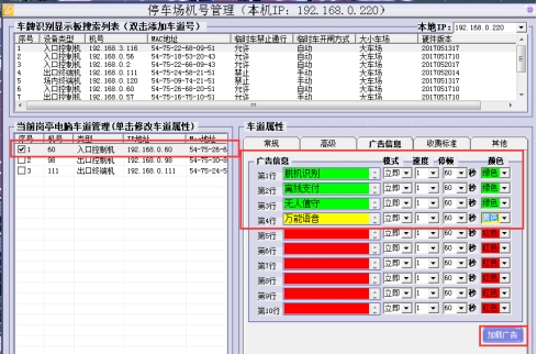 双击车牌识别显示控制板搜索列表您需要管理的控制板,然后单个设置控制板属性后点保存