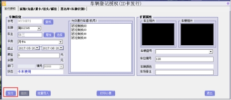 输入车辆信息后点发行即可登记完一辆车(记得要选通行车道哟)