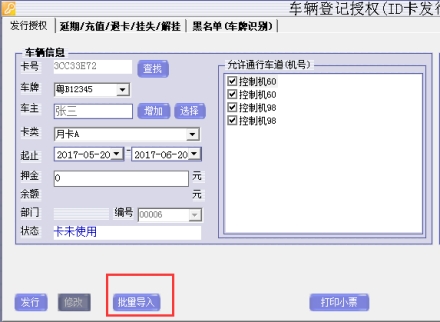 批量导入车辆信息必须先下载一个导入的模板,然后根据模板登记车牌信息后导入到车辆发行列表