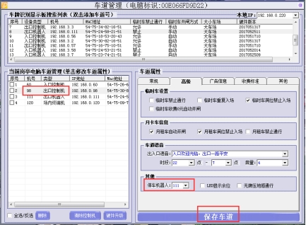 登录软件后使用前我们需要先设置车道属性,登记车辆后方可使用。点车道设置打开设置界面