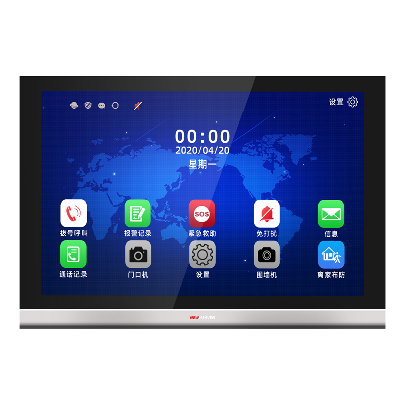 支持可视对讲、防区设置及待机图片推送显示。